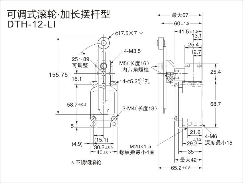 耐热型(DTH系列),通用直立型,可根据使用环境和用途进行选择,**命2回路限位开关。