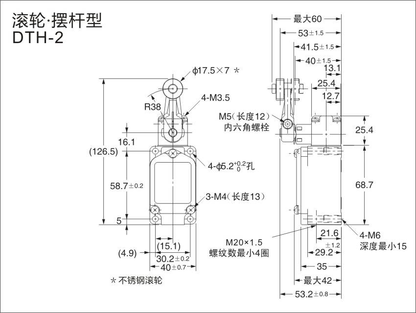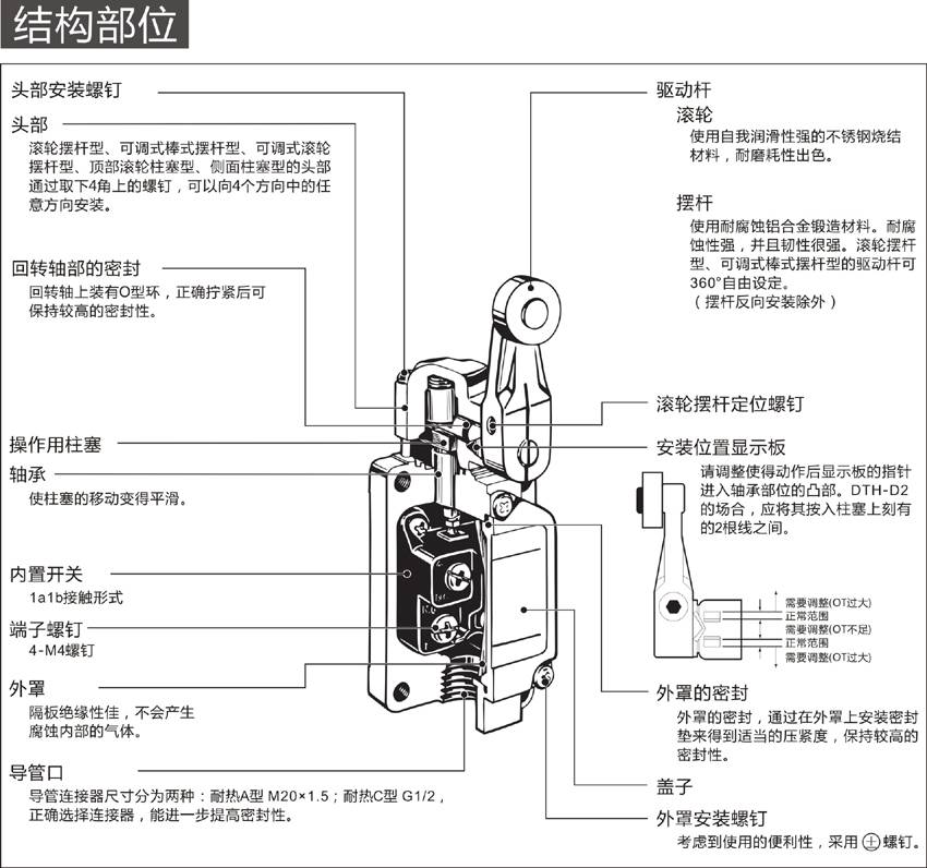 耐热型(DTH系列),通用直立型,可根据使用环境和用途进行选择,**命2回路限位开关。