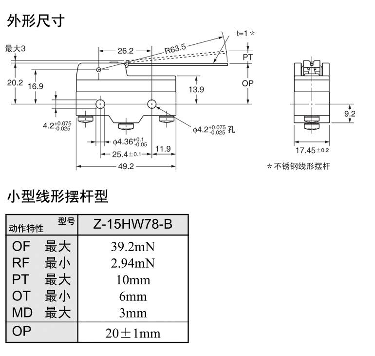 Z-15HW78-B微动开关 小型限位开关 TM-1705 欧得行程开关详细内容