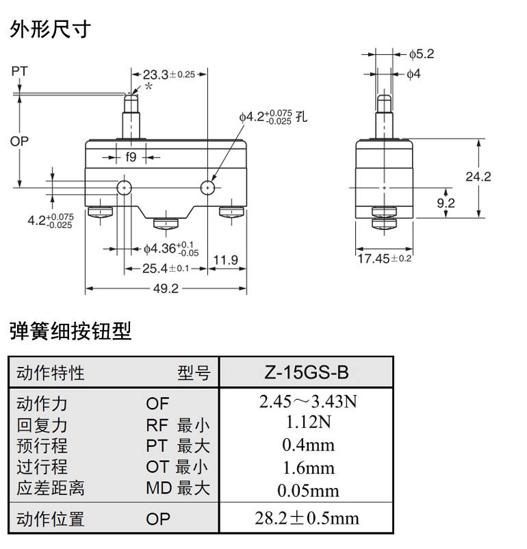 Z-15GS-B微动开关 小型限位开关 TM-1305 欧得行程开关详细内容