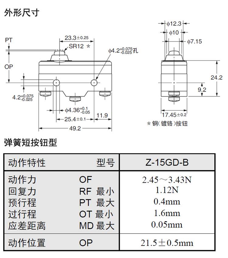 Z-15GD-B微动开关